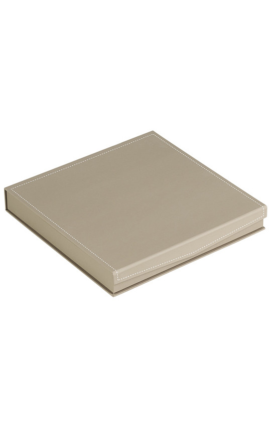 Livraison en boîte luxe plate, coloris taupe, surpiqûre incluse, finition "soft touch", fermeture aimantée.