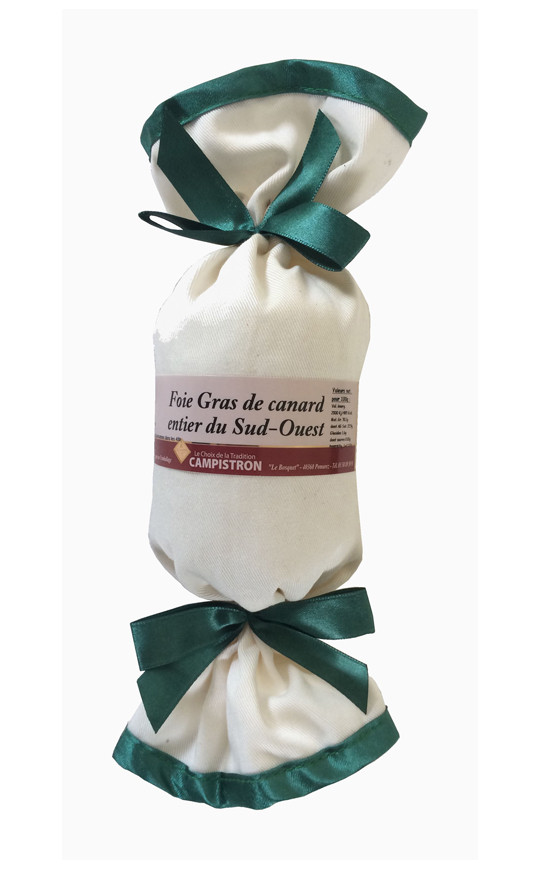Un lobe de foie gras de canard entier au naturel, selon la bonne et traditionnelle méthode landaise juste salé et poivré (garanti sans additif, sans conservateur) et cuit dans son bocal dans lequel il conserve tous ses arômes.